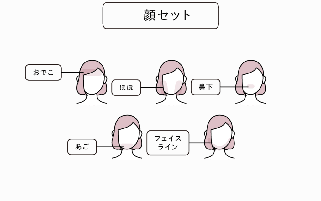 ●おでこ、頬、鼻下、顎、フェイスライン全てをセットにした脱毛コースです。