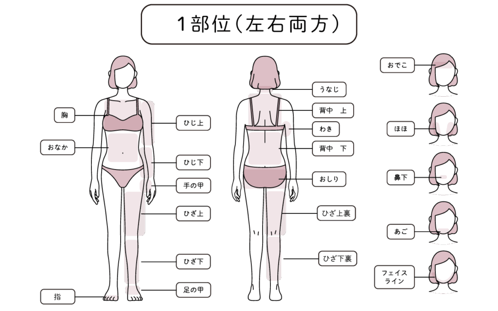● ただし、5箇所以上の場合は全身脱毛料金(16,000円)を上限とさせていただきます。
