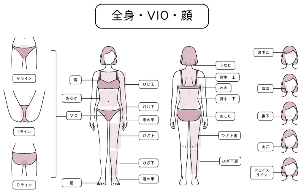 ⚫︎ 顔やVIOを含む全身すべての部位をしっかりケアできるコースです。細かい部分までまとめてお手入れしたい方におすすめです。