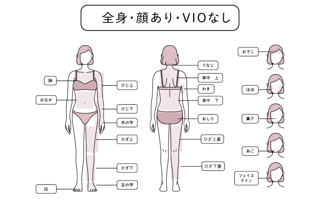 ⚫︎ 顔を含む全身の脱毛コースです。※VIOは含みません。