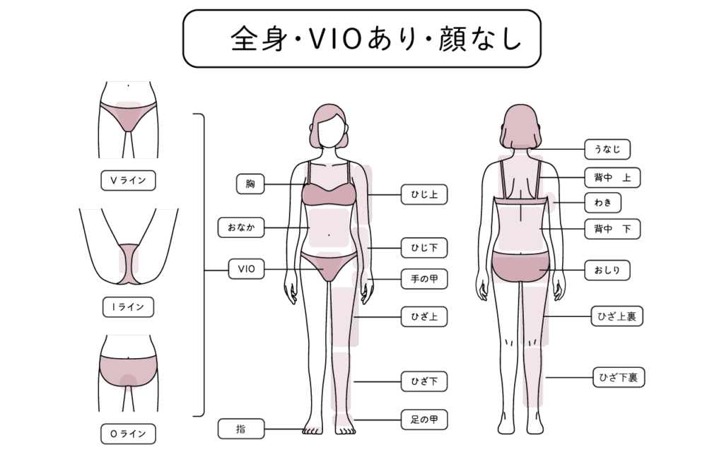⚫︎ VIOを含む全身の脱毛コースです。※顔は含みません。